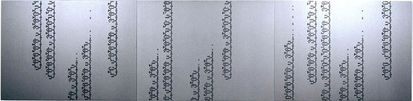 Oil, punctures, and iridescent stainless steel paint on wood panel