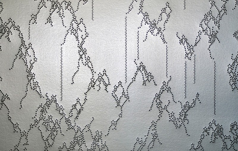![]() DETAIL: Inscape Series (Horizontal Scroll #2), 2014 Punctures and iridescent stainless steel paint on 300-lb watercolor paper 25" x 52" |
