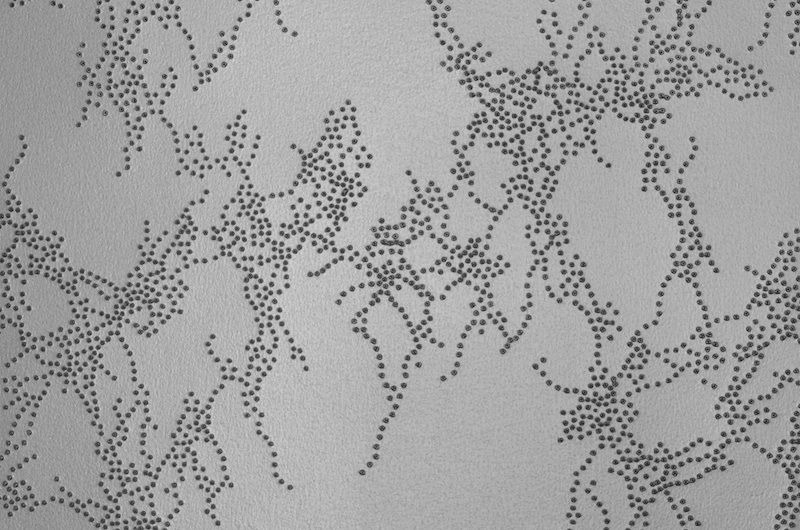 Punctures and iridescent stainless steel paint on 300-lb watercolor paper