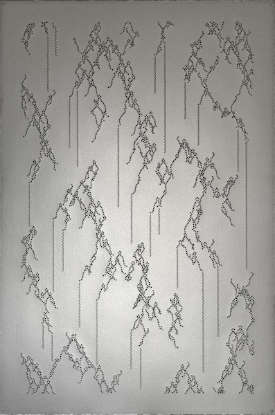 Punctures and iridescent stainless steel paint on 300-lb watercolor paper