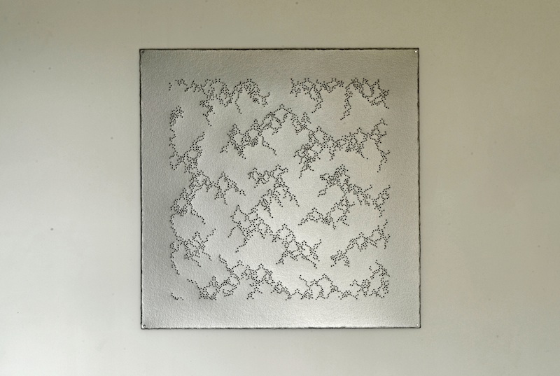Punctures and iridescent stainless steel paint on 300-lb watercolor paper