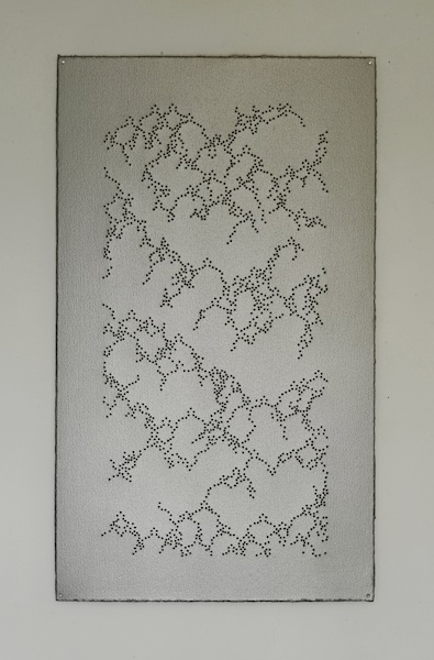 Punctures and iridescent stainless steel paint on 300-lb watercolor paper