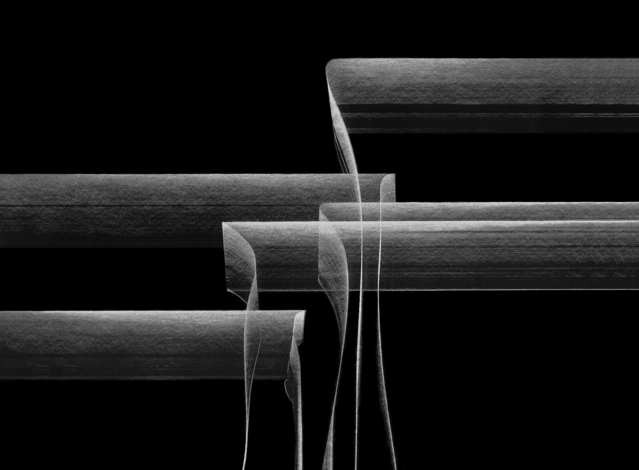 Never the Same River #16, 2018 Graphite drawing, scanned and laser-etched into black lucite and painted, dimensions variable. DETAIL |