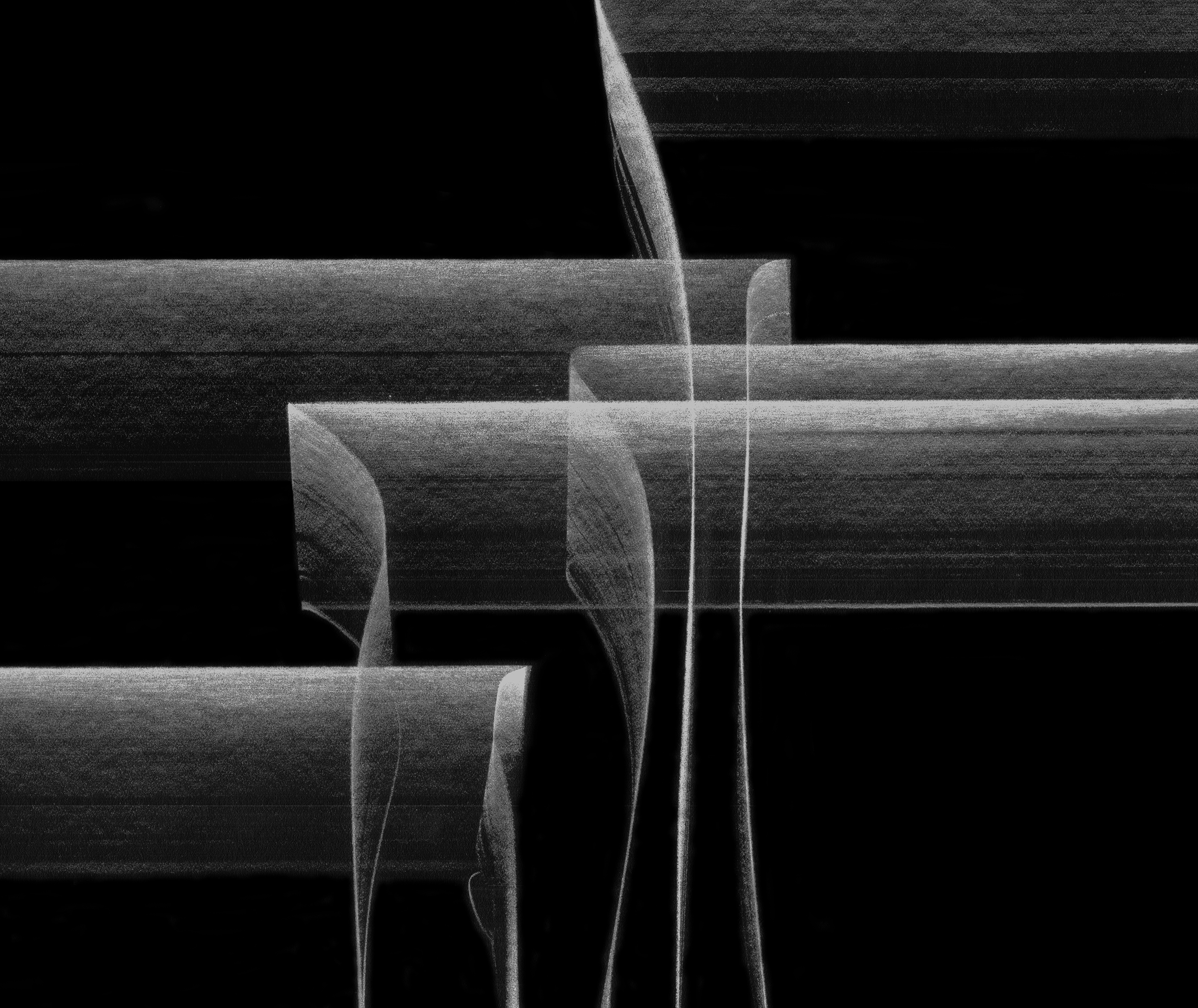 DETAIL: Never the Same River 16 Graphite drawing, scanned and laser-etched into black lucite and painted, dimensions variable. |