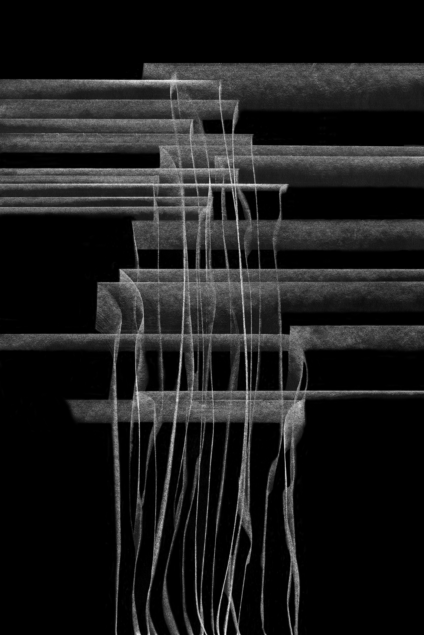 Never the Same River #6, 2018 Graphite drawing, scanned and laser-etched into black lucite and painted, dimensions variable. |
